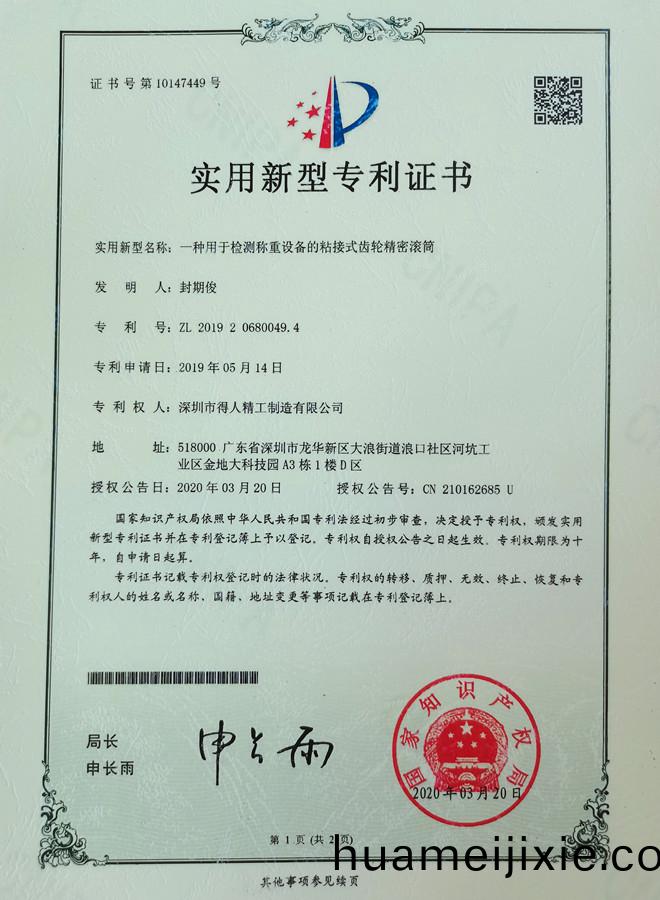 - 得人精(jing)工(gong)齒輪(lun)精密(mi)滾筩專(zhuan)利